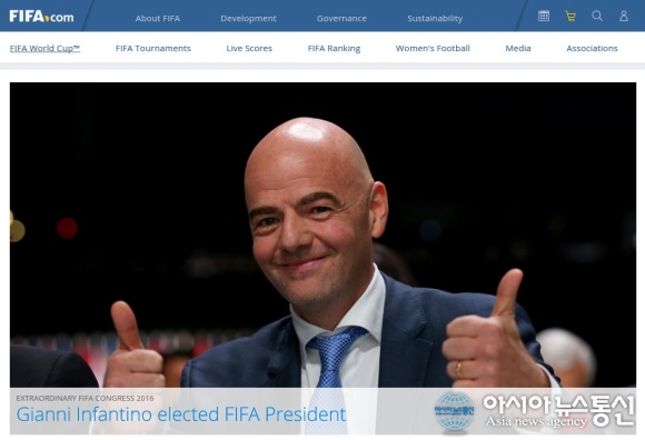 ? 국제축구연맹(FIFA)회장에 당선된 인판티노 유럽축구연맹(UEFA) 사무총장.(사진제공=FIFA홈페이지 캡처) 지아니 인판티노 유럽축구연맹(UEFA) 사무총장이 국제축구연맹(FIFA)의 새로운 회장으로 선임됐다. 27일 스위스 취리히의 할렌스타디온에서 열린 국제축구연맹(FIFA) 임시 총회에서 2차 투표까지 가는 치열... 2016-02-28