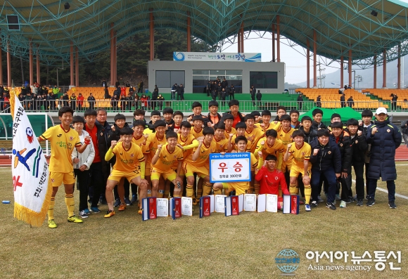 ? 광주광역시 금호고등학교 축구 선수들이 우승 기념촬영을 하고 있다.(사진제공=광양시청) 전국 고등학교 축구 최강을 가리는 ‘제18회 백운기 전국 고등학교 축구대회’가 지난 17일부터 28일까지 12일간의 일정을 끝으로 광주 금호고의 우승으로 막을 내렸다.? 이번 대회는 대한축구협회와 광양시체육회... 2016-02-28