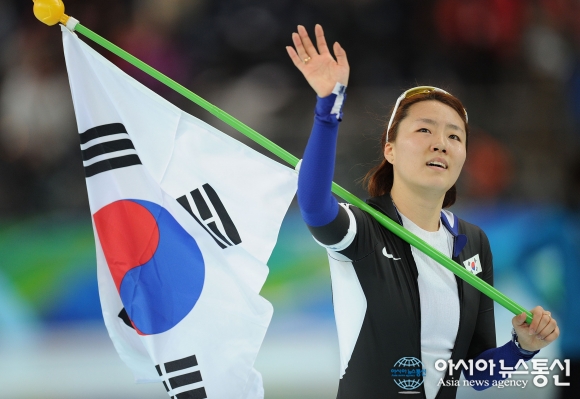 이상화 선수가 금메달을 차지한 뒤 태극기를 들고 관중에게 인사를 하고 있다. /아시아뉴스통신DB "2년만에 다시 찾아왔습니다 사실 많이 떨리고 힘들고 외로웠지만 자신과의 싸움에서 드뎌 내가 이김 감사합니다!" 세계선수권 500m에서 1위를 차지... 2016-02-14