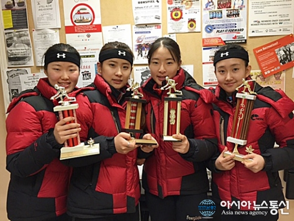캐나다 동계 전지훈련에 참가 중인 경북 의성여자고등학교(교장 김현인) 컬링부가 현지에서 참가한 대회에서 입상한 후 트로피를 들고 기뻐하고 있다.(사진제공=의성군 교육지원청) 캐나다 동계 전지훈련에 참가 중인 경북 의성여자고등학교(교장 김... 2016-02-01