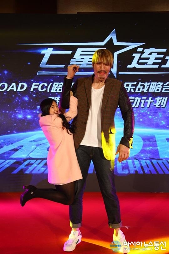 자료사진.(사진제공=로드FC) '테크노 골리앗' 최홍만과 '여고생 파이터' 이예지가 지난 5일 중국 베이징 호텔에서 열린 칠성연주 글로벌 스포테인먼트 전략제휴 발표회 및 인터넷 기반 엔터테인먼트 IP 시동행사에 참석했다. 두 사람은 이... 2016-01-26
