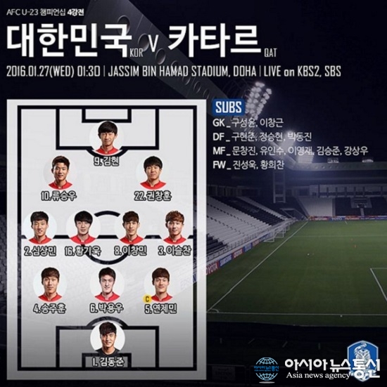 2016 AFC U-23 챔피언십 한국 카타르 4강전 방송장면캡처.(사진출처=방송장면캡처) 한국 올림픽 축구 대표팀이 27일 오전 1시 30분(이하 한국시각) 2016 아시아축구연맹(AFC) U-23 챔피언십 한국 카타르 4강전에서 3-1 승리를 거뒀다. 이날 올림픽 축구 대표팀... 2016-01-27