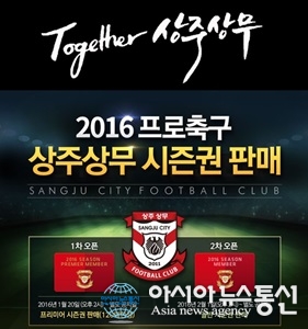 2016시즌권 판매 홍보물.(사진제공=상주상무) 올해부터 클래식(1부)에서 경기를 갖는 상주상무프로축구단(대표이사 백만흠)이 20일부터 2016 시즌권 판매를 한다. 20일 오후 2시부터 1차 오픈되는 프리미어 시즌권은 올해 새롭게 선보이는 가변석 120석에 ... 2016-01-20