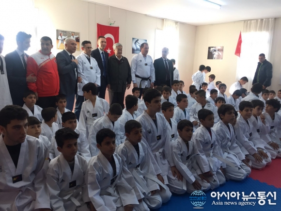 지난 15일, 조정원 총재가 온쿠피나르 캠프를 방문해 10세부터 14세까지의 태권도 청소년 수련생들에게 태권도복과 신발을 나눠줬다./아시아뉴스통신DB 세계태권도연맹(총재 조정원)은 지난 15일, 터키 킬리스(Kilis)에 위치한 난민캠프인 온쿠피나르 캠... 2016-01-17