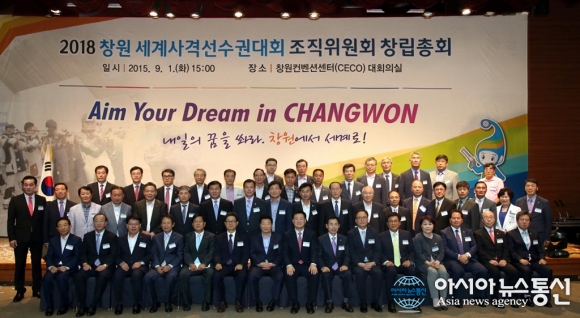 경남 창원컨벤션센터에서 지난 9월 열은 ‘2018 창원 세계사격선수권대회 조직위원회 창립총회’에서 기념촬영 모습.(사진제공=창원시청) 오는 2018년 열리는 ‘창원 세계사격선수권대회’ 준비가 올해 조직위원회의 정비를 시작으로 착착 ... 2015-12-30
