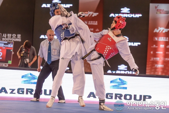2015 월드태권도그랑프리파이널 남자 -68kg급 우승을 차지한 이대훈(왼쪽 두번째)의 결승 경기 장면이다.(사진제공=세계태권도연맹) 한국 태권도의 간판스타 이대훈(한국가스공사)이 다음해 올림픽 티켓을 따내며 다시 한번 그랜드슬램을 노릴 수 있게 ... 2015-12-07