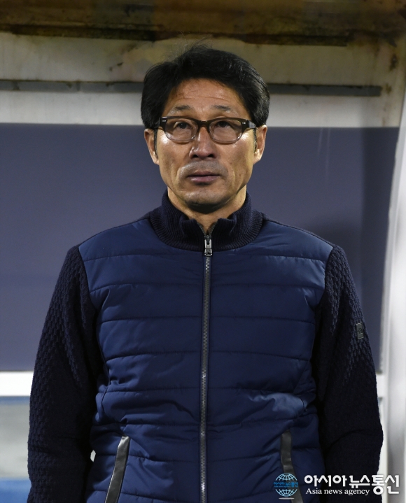2일 오후 경기도 수원시 수원종합운동장에서 현대오일뱅크 K리그 승강 플레이오프 수원FC VS 부산 1차전이 열리고 있다. 수원FC 조덕제 감독이 경기전 이글이글 타오르는 눈빛으로 선수들을 바라보고 있다./아시아뉴스통신=김근현 기자 2015 K리그 승강플... 2015-12-03
