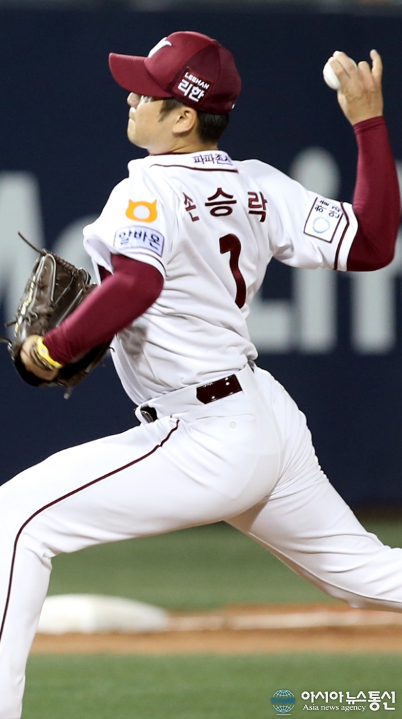 손승락./아시아뉴스통신DB 롯데자이언츠가 FA 투수 손승락을 영입했다. 30일 롯데는 "FA 손승락과 4년, 총액 60억원(계약금 32억원, 연봉 7억원)의 조건으로 FA 계약을 체결했다"고 밝혔다. 손승락은 "마무리투수로 성장해 지금까지 올 수 있었... 2015-11-30