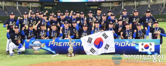 프리미어 12 우승 기념사진.(사진출처=WSBC 홈페이지 캡쳐) '2015 프리미어 12' 결승전에서 대한민국이 대회 첫 우승을 차지했다. 21일 세계야구소프트볼연맹(WBSC)에서 주관하는 '2015 프리미어 12' 결승전이 일본 도쿄돔에서 열렸다. 이날 ... 2015-11-21
