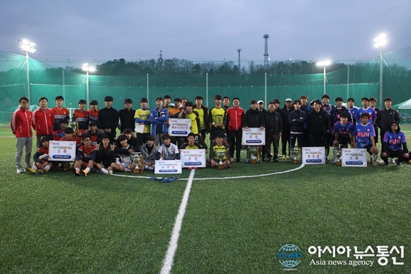 22일 충북 청주시 청주풋볼센터에서 아시아뉴스통신충북본부 주최 제2회 직지배풋살대회가 막을 내린 가운데 일반부ㆍ고등부의 우승, 준우승, 3위, 4위 팀이 기념촬영하고 있다./아시아뉴스통신=김지수 기자 대전 울프풋살클럽(감독 신동구)이 21∼22... 2015-11-22