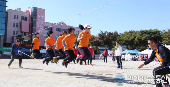 지난달 31일 열린 '영진사이버대학 2015한마음체육대회'서 참가자들이 단체줄넘기 경기를 하고 있다.(사진제공=영진사이버대학) 영진사이버대학(총장 최재영, www.ycc.ac.kr)은 지난달 31일 대구 북구 복현동 대학 운동장에서 '2015년 한마음체육... 2015-11-01