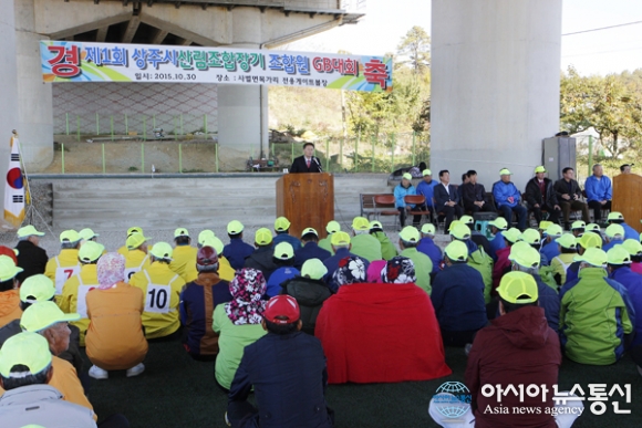 30일 송재엽 경북 상주시산림조합장이 올해 처음으로 열리는 조합원 GB대회 개막식에 참석해 대회사를 하고 있다./아시아뉴스통신=김철희 기자 '제1회 상주시산림조합장기 조합원 GB대회'가 30일 경북 상주 사벌면 목가리 전용게이트볼장에서 열... 2015-10-30
