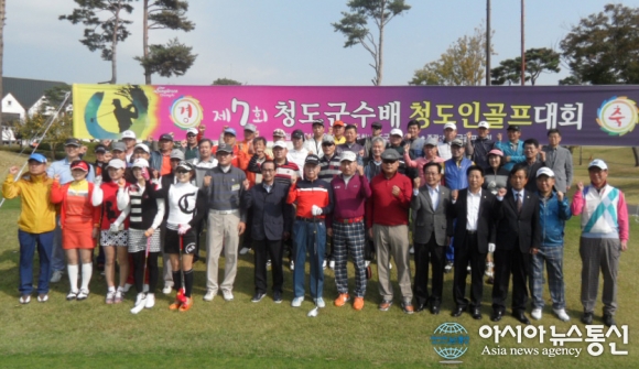 지난 29일 청도 그레이스골프장에서 열린 '제7회 청도군수배 청도인 골프대회'에 참석한 이승율 청도군수를 비롯해 군의원, 각 기관 단체장과 출향인사 및 지역 골프 동호인들이 기념촬영을 하고 있다.(사진제공=청도군청) 경북 청도군(군수 이... 2015-10-31