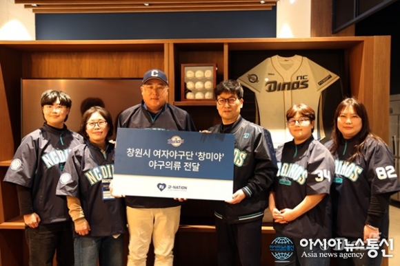 (사진제공=NC 다이노스) [아시아뉴스통신=이상진 기자] NC 다이노스가 19일 창원시 여자 야구단 ‘창미야’에 NC 다이노스 구단 의류를 지원했다. 이날 창원NC파크에서 열린 전달식에는 손성욱 NC 다이노스 경영본부장과 김형우 창미야 감독 및 박현주, 민건해, 강민지, 임소정 선수가 ... 2026-03-20