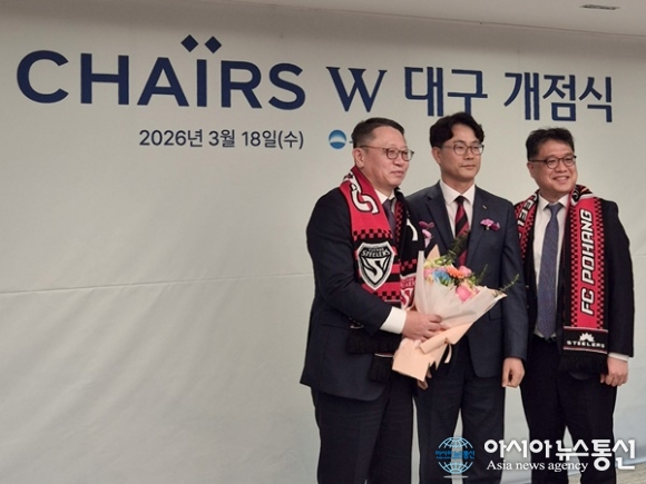 (사진제공=포항 스틸러스) [아시아뉴스통신=이상진 기자] 포항스틸러스가 우리은행과 전략적 파트너십을 바탕으로 협력 범위를 넓혀가고 있다. 포항스틸러스 김상락 사장이 지난 18일 우리은행 TWO CHAIRS W(이하 투체어스W) 대구 개점식에 참석했다. 우리은행은 지난해 포항스틸러스와 후... 2026-03-20