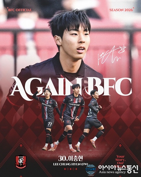 (사진제공=부천FC1995) [아시아뉴스통신=이상진 기자] 부천FC1995(구단주 조용익 부천시장, 이하 부천)가 구단 유스 출신이자 ‘1호 준프로’ 이충현과 2028년까지 정식 프로 계약을 체결하며 동행을 이어간다. 이충현은 부천 U15와 U18을 거치며 일찌감치 대형 공격수로서의 자질을 뽐냈... 2026-03-20