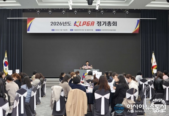 (사진제공=KLPGA) [아시아뉴스통신=이상진 기자] 3월 19일 한국여자프로골프협회(이하 KLPGA)가 서울시 송파구에 위치한 서울올림픽파크텔에서 ‘2026 KLPGA 정기총회’를 열었다. 이번 정기총회에는 대의원 62명과 임원 16명 등 총 78명이 참석해 자리를 빛냈다. 정기총회에 참석한 김상... 2026-03-20