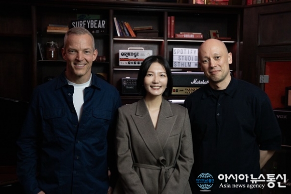 (사진제공=스포티파이) [아시아뉴스통신=이상진 기자] 글로벌 오디오·음원 스트리밍 플랫폼 스포티파이(Spotify)의 공동 최고경영자(Co-CEO) 알렉스 노스트롬(Alex Norström)과 구스타브 소더스트롬(Gustav Söderström)이 스웨덴 스톡홀름에 위치한 스포티파이 본사에서 네이버㈜(대표... 2026-03-26
