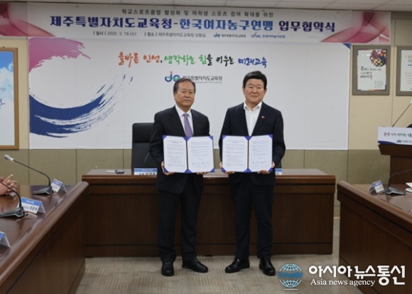 (사진제공=WKBL) [아시아뉴스통신=이상진 기자] WKBL(한국여자농구연맹)은 18일 제주특별자치도교육청 2층 상황실에서 ‘학교스포츠클럽 활성화 및 여학생 스포츠 참여 확대를 위한’ 업무 협약을 체결했다. 이날 협약식에는 WKBL 신상훈 총재와 제주특별자치도교육청 김광수 교육감 ... 2026-03-19