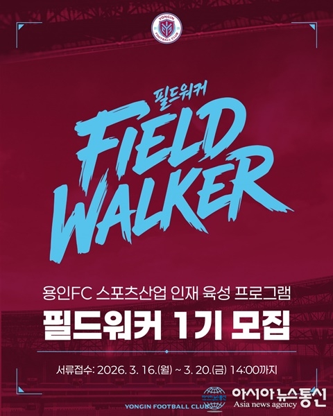 (사진제공=용인FC) [아시아뉴스통신=이상진 기자] 용인FC는 스포츠산업 인재 육성 프로젝트 ‘필드워커(FIELD WALKER)’ 1기 참가자를 모집한다고 밝혔다. 필드워커는 현장 실무자 교육을 바탕으로 경기 운영 현장을 가까이에서 경험하고, 그 과정에서 축적한 팬 경험을 분석해 더 나은 ... 2026-03-19
