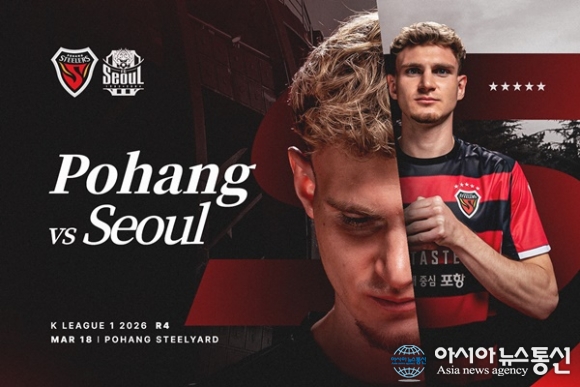(사진제공=포항 스틸러스) [아시아뉴스통신=이상진 기자] 포항스틸러스가 FC서울을 상대로 시즌 첫 승에 도전한다. 포항스틸러스는 18일 오후 7시 30분 포항스틸야드에서 FC서울과 하나은행 K리그1 2026 4라운드 맞대결을 펼친다. 지난 15일 열린 홈 개막전에서 포항은 1-1 무승부를 기록했다. ... 2026-03-18