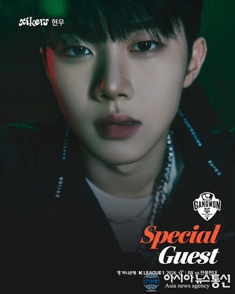 (사진제공=강원FC) [아시아뉴스통신=이상진 기자] 강원FC 홈경기에 싸이커스(xikers) 멤버 현우가 뜬다. 강원FC는 오는 18일 오후 2시 강릉하이원아레나에서 전북현대와 하나은행 K리그1 2026 8라운드 홈경기를 치른다. 이날 경기에는 싸이커스 멤버 현우가 경기장을 찾아 팬들과 만난다. 현... 2026-04-16