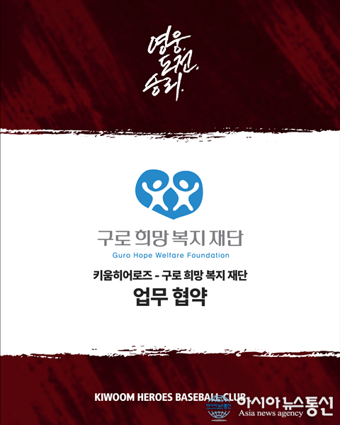 (사진제공=키움 히어로즈) [아시아뉴스통신=이상진 기자] 키움히어로즈는(대표이사 위재민)는 재단법인 구로희망복지재단과 지역민을 위한 업무협약을 체결했다. 이번 협약으로 구로희망복지재단은 2024년부터 3년째 키움과 동행을 이어가게 됐다. 키움은 2026시즌동안 구로구민과 구... 2026-03-12