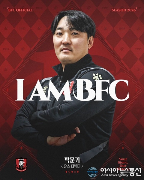 (사진제공=부천FC1995) [아시아뉴스통신=이상진 기자] 부천FC1995(구단주 조용익 부천시장, 이하 부천)가 구단 유소년 시스템의 체계적인 발전과 전문성 강화를 위해 박문기 전 부천 U-18 감독을 신임 유스 디렉터로 선임했다. 박문기 유스 디렉터는 부천의 K3 시절인 2009년부터 2012년까지 101경... 2026-03-12