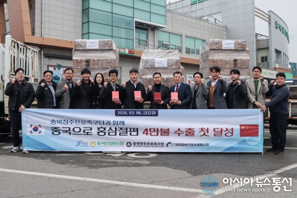 (사진제공=충북청주FC) [아시아뉴스통신=이상진 기자] 충북청주프로축구단(이하 충북청주FC)과 충북인삼농협이 손을 잡고 추진해 온 지역 특산물 중국 시장 진출 사업이 작년에 이어 올해도 알찬 결실을 맺고 있다. 충북청주FC와 충북인삼농협은 6일 충북 증평군에 위치한 충북인삼농협 ... 2026-03-12