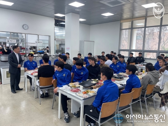 (사진제공=인천 유나이티드 FC) [아시아뉴스통신=이상진 기자] 인천유나이티드(대표이사 조건도) 선수단이 팬 후원회의 따뜻한 응원과 지원 속에 사기와 체력을 끌어올리며 3라운드 포항 원정경기의 승리를 다짐했다. 인천 구단은 11일 인천 선학동에 위치한 인천유나이티드 FC 축구센터... 2026-03-12
