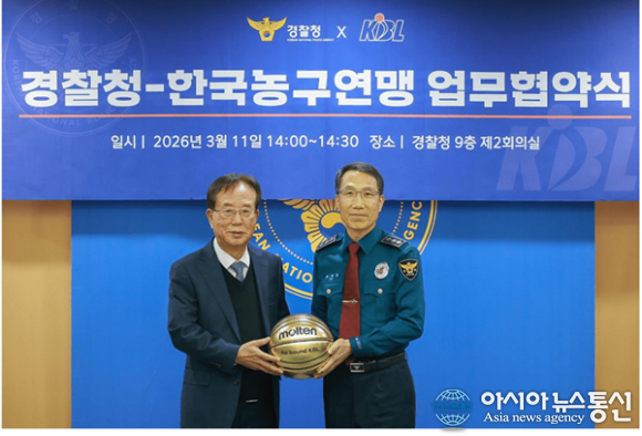 (사진제공=KBL) [아시아뉴스통신=이상진 기자] KBL은 3월 11일 경찰청에서 경찰청(청장 직무대행 유재성)과 범죄예방, 기초질서 확립 및 안전한 관람 문화 조성을 위한 업무협약을 체결했다. 이날 협약식에는 이수광 KBL 총재와 유재성 경찰청장 직무대행을 비롯한 양측 관계자들이 참석했으... 2026-03-12