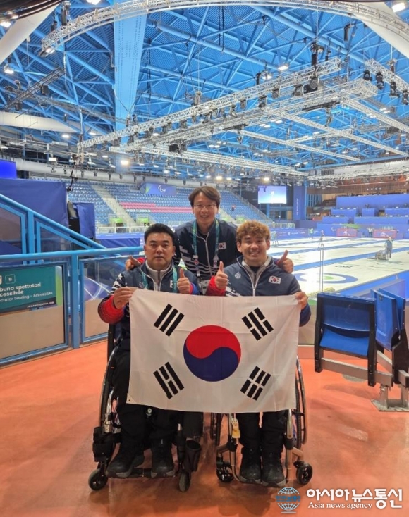'2026 밀라노-코르티나 동계패럴림픽' 컬링 종목에 국가대표로 출전한 국립경국대학교 차진호 선수(스포츠레저학 전공 3학년 재학, 왼쪽부터), 장창용 교수(체육학 전공, 컬링 대표팀 멘탈 코치), 이용석 선수(건축공학과 졸업).(사진제공=국립경국대학교) [아시아뉴스통신=윤석원 기자] ... 2026-03-10