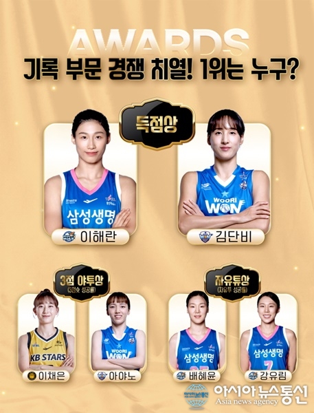 (사진제공=WKBL) [아시아뉴스통신=이상진 기자] BNK금융 2025~2026 여자프로농구가 정규리그 막바지를 향해가고 있다. 팀별 2~4경기씩 남겨놓은 가운데, 개인 타이틀 경쟁에도 관심이 집중되고 있다. 특히 통계 부문은 시즌 마지막까지 치열한 순위 싸움이 이어질 전망이다. 득점상 경쟁에서는... 2026-03-11