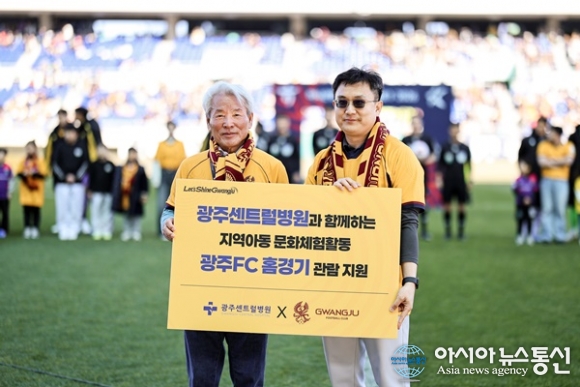 (사진제공=광주FC) [아시아뉴스통신=이상진 기자] 프로축구 광주FC가 광주센트럴병원과 함께 지역 아동들에게 특별한 추억을 선물했다. 광주는 지난 7일 광주월드컵경기장에서 열린 인천유나이티드와의 하나은행 K리그1 2026 홈 개막전에 지역아동센터 광주지원단 소속 아동 및 관계자 1,00... 2026-03-10