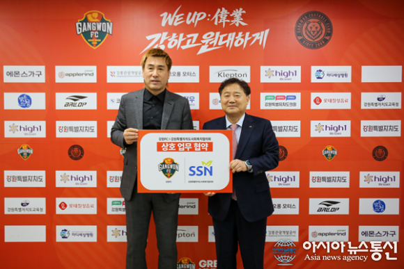 (사진제공=강원FC) [아시아뉴스통신=이상진 기자] 강원FC가 강원특별자치도사회복지협의회와 함께 문화소외계층을 위한 시즌권 나눔사업에 나선다. 강원FC는 강원특별자치도 강원FC 춘천사무국에서 강원특별자치도사회복지협의회와 ‘2026 강원FC 시즌권 나눔사업’ 추진을 위한 업... 2026-03-10