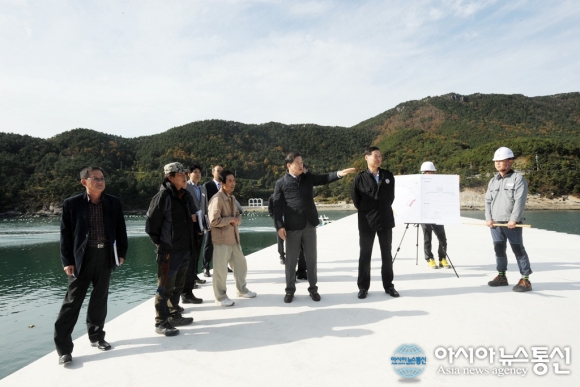 11일 김윤근 경남도의회 의장이 통영시 도산면 수월항 시설공사 현장을 방문, 공사관계자로부터 사업현황을 보고 받고 점검하고 있다.(사진제공=경남도의회 사무처) 경상남도의회 김윤근 의장은 지난 11일과 12일 이틀간 남해안 일대 해양수산 사업현... 2015-11-13