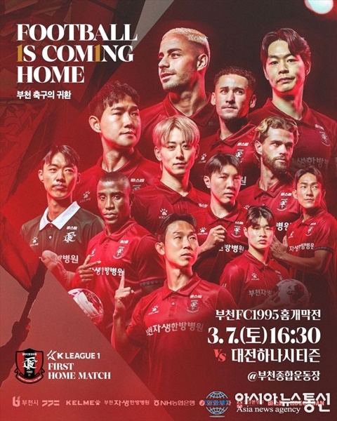 (사진제공=부천FC1995) [아시아뉴스통신=이상진 기자] 부천FC1995(구단주 조용익 부천시장, 이하 부천)가 오는 7일 오후 4시 30분 부천종합운동장에서 열리는 '하나은행 K리그1 2026' 2라운드에서 대전하나시티즌(이하 대전)을 상대로 역사적인 K리그1 홈 개막전을 치른다. 부천은 지난 1일 ... 2026-03-06