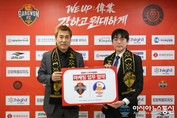 (사진제공=강원FC) [아시아뉴스통신=이상진 기자] 강원FC가 주식회사 아일랜드와 3년 연속 손을 맞잡았다. 강원FC는 강원특별자치도 강원FC 춘천사무국에서 주식회사 아일랜드(이하 아일랜드, 브랜드명 감자아일랜드)와 2026시즌 마케팅 업무 협약을 맺었다고 5일 밝혔다. 이날 행사에는 김... 2026-03-06