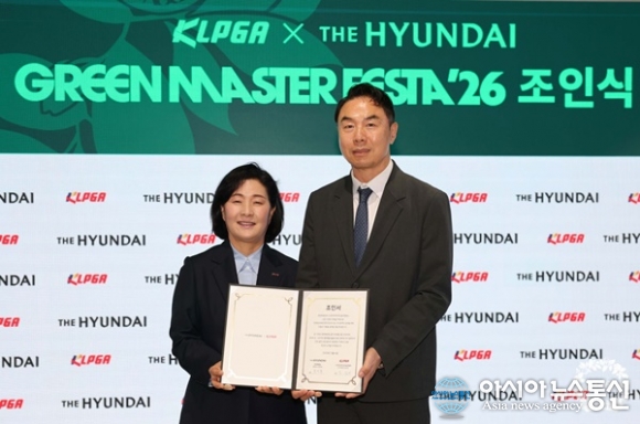 (사진제공=KLPGA) [아시아뉴스통신=이상진 기자] 3월 4일 한국여자프로골프협회(이하 KLPGA)가 서울 강동구에 위치한 KLPGA빌딩에서 현대백화점(대표이사 사장 정지영)과 GREEN MASTER FESTA ‘26 공동 주최 조인식을 진행했다. KLPGA와 현대백화점이 공동 주최하는 본 행사는 3월 20일(금)부터 29일(... 2026-03-05