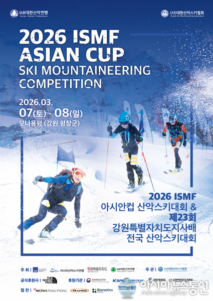 (사진제공=대한산악연맹) [아시아뉴스통신=이상진 기자] 사단법인 대한산악연맹(회장 조좌진)은 3월 7일부터 3월 8일까지 강원특별자치도 평창군 모나 용평에서 '2026 ISMF 아시안컵 산악스키대회 겸 제23회 강원특별자치도지사배 전국 산악스키대회'를 개최한다고 밝혔다. 이번 대회... 2026-03-05