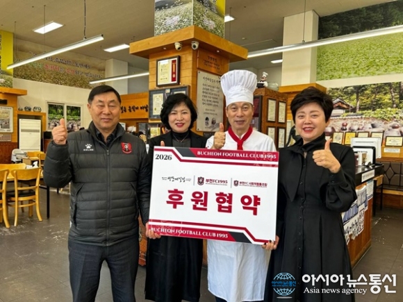 (사진제공=부천FC1995) [아시아뉴스통신=이상진 기자] 부천FC1995(구단주 조용익 부천시장, 이하 부천)가 메밀국수 전문점 ㈜서안메밀집(대표이사 서연희, 이하 서안메밀집)과 2026시즌에도 동행을 약속했다. 부천은 지난 25일 부천시 심곡동에 위치한 서안메밀집에서 부천 김성남 단장과 서... 2026-03-05