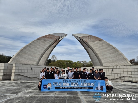 (사진제공=천안시티FC) [아시아뉴스통신=이상진 기자] 천안시민프로축구단(이하 천안시티FC)이 구단 사무국 직원과 유소년 코칭스태프들이 함께 천안시에서 운영하는 ‘천안시티투어’ 프로그램에 참여하며 지역과의 유대감을 더욱 강화했다고 밝혔다. 이번 투어는 사무국 구성원... 2026-04-16