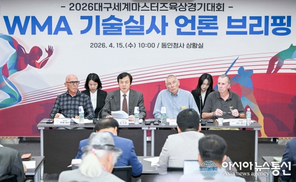 세계마스터즈육상연맹(WMA) 대표단이 15일 대구시청 동인청사 상황실에서 2026대구세계마스터즈육상경기대회 기술실사 언론 브리핑을 하고 있다.(사진제공=대구시청) [아시아뉴스통신=윤석원 기자] 2026대구세계마스터즈육상경기대회 조직위원회는 오는 8월22일부터 9월3일까지 13일간(개회식 ... 2026-04-15