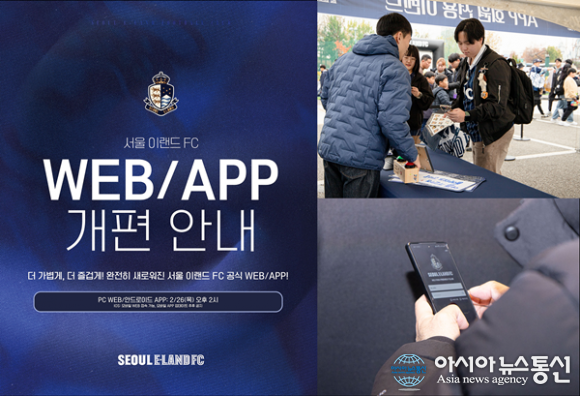 (사진제공=서울 이랜드 FC) [아시아뉴스통신=이상진 기자] 서울 이랜드 FC가 팬 의견을 반영해 구단 홈페이지와 공식 어플리케이션을 전면 개편한다. 서울 이랜드는 지난해 6월 구단 소식과 콘텐츠, 각종 서비스를 한 곳에서 제공하기 위해 공식 어플리케이션을 출시하고 고객 정보 기반의... 2026-02-27