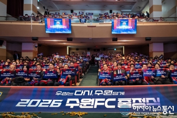 (사진제공=수원FC) [아시아뉴스통신=이상진 기자] 수원FC의 2026시즌 출정식이 2월 24일 수원시청 별관 2층 대강당에서 성황리에 개최됐다. 이날 행사에는 이재준 수원특례시장(수원FC 구단주)을 비롯해 신현삼 재단법인 수원에프씨 이사장 및 이사진, 박광국 수원시체육회장 등 내빈과 남녀 ... 2026-02-27