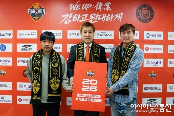 (사진제공=강원FC) [아시아뉴스통신=이상진 기자] 주식회사 아트갤러리가 강원FC 시즌권 구매 및 기부 릴레이에 동참했다. 강원FC는 강원특별자치도 강원FC 춘천사무국에서 주식회사 아트갤러리(아트갤러리)와 강원FC 시즌권 구매-기부 릴레이 행사를 진행했다고 26일 밝혔다. 이날 행사에... 2026-02-27