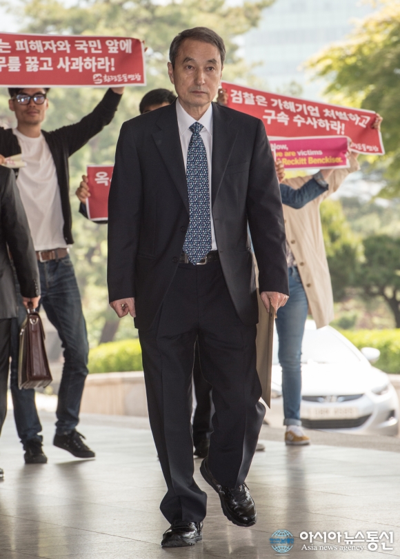 가습기 살균제를 판매한 혐의로 신현우 옥시레킷벤키저 (현RB 코리아) 전 대표가 검찰해 출석한 가운데 피해자 가족들이 항의하고 있다./아시아뉴스통신DB '가습기 살균제의 최대 가해기업인 다국적 기업 옥시레킷벤키저(옥시·현 RB코리아)의 신현우 전 대표(70)에 대해 법원이 징역 7... 2017-01-06