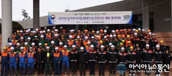 남부지방산림청 2017년 숲가꾸기 발대식 기념촬영 모습.(사진제공=산림청) 산림청(청장 신원섭)이 사회 취약계층의 일자리 창출을 위해 올 한해 152억 원의 예산을 투입해 37만 4000명에게 공공산림가꾸기 일자리를 제공한다고 6일 밝혔다. ‘공공산림가꾸기사업’은 취약계층을 우선 ... 2017-01-06