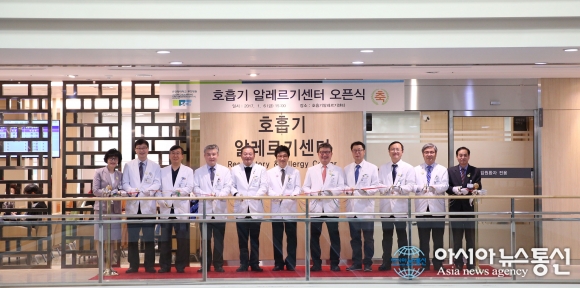 6일 순천향대학교 부천병원이 호흡기알레르기센터 개소식에서 좌측부터 황태희 간호부장, 이태경 내과계 진료부장, 장안수 호흡기알레르기내과 교수, 김도진 호흡기알레르기내과 과장, 이문성 병원장, 서교일 총장, 임수재 대외협력부원장, 신응진 진료부원장, 김진국 교육수련실장, 석현 QI실장, ... 2017-01-06