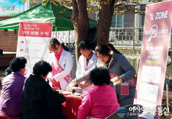 5일 경북 봉화군보건소가 새해 농업인 실용교육 일정에 맞춰 읍·면 사무소 회의실에서 농업인들을 대상으로 레드서클 캠페인을 실시하고 있다.(사진제공=봉화군청) 경북 봉화군보건소(소장 이동국)가 5일부터 오는 23일까지 2017년 새해 농업인 실용교육 일정에 맞춰 읍·면 사무소 ... 2017-01-05